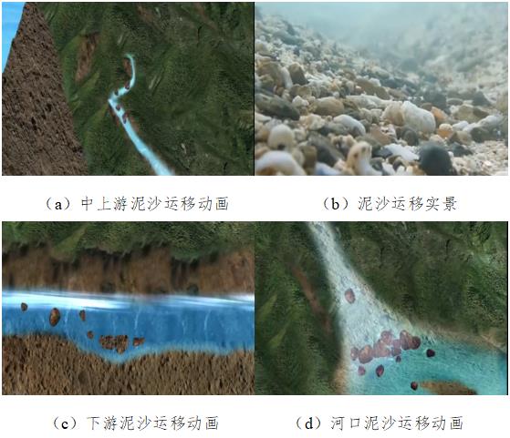 (3)虚拟河道纵剖面,如图5所示,动画展示泥沙在河水中的运移,如图6所示。